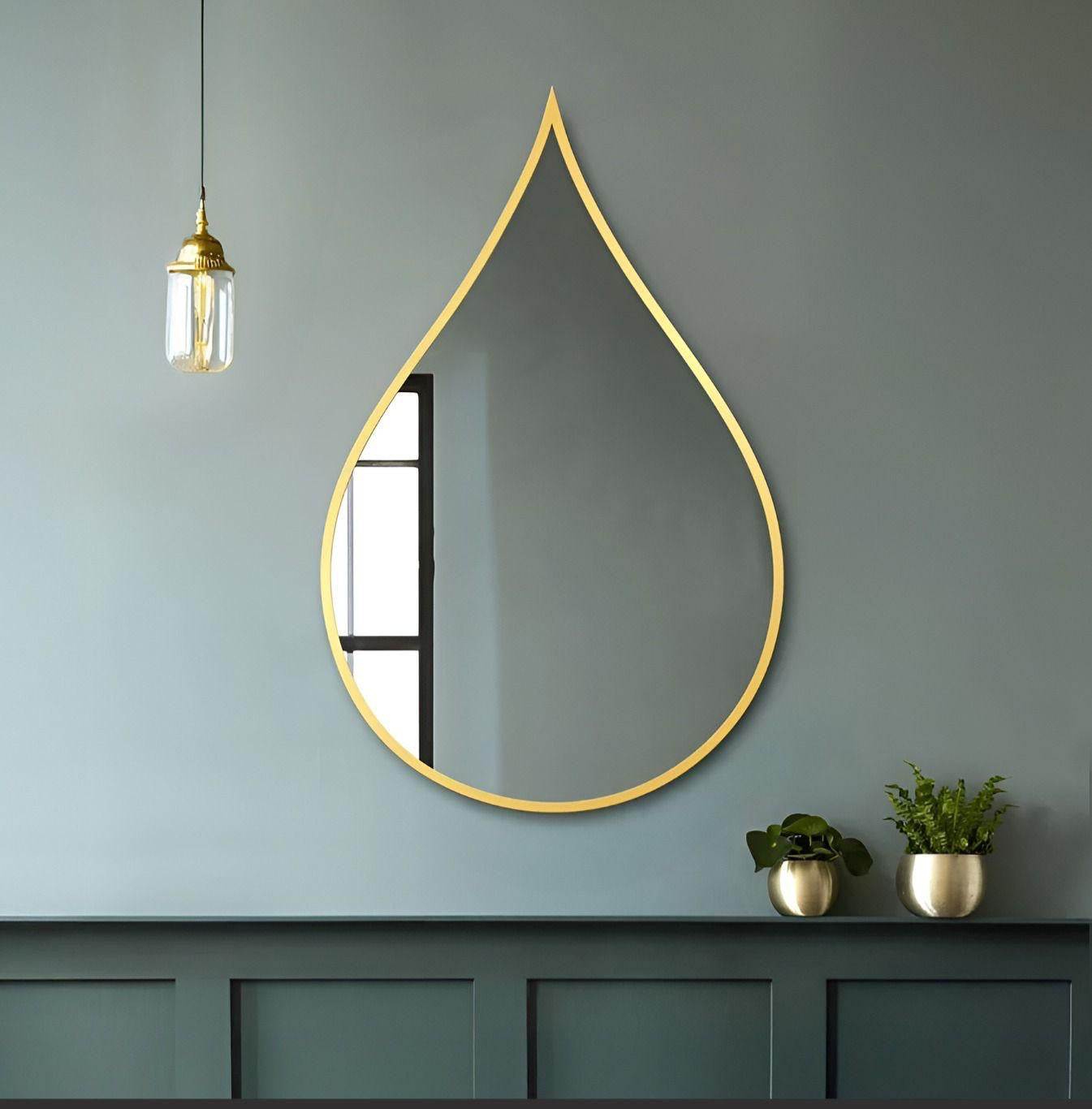 מראה  בצורת טיפה עם מסגרת זהב