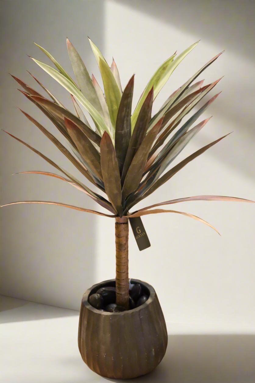 עץ יוקה + כד שחור מעוצב + חלוקי נחל